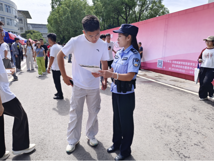 (通讯员 张成哲)为切实提升2025级新生反诈防骗意识,进一步筑牢校园安全防线,在9月9日新生报到期间,15vip太阳集团联合平顶山市公安局、示范区公安分局、综治办、湖滨派出所以及电信、金融等单位联合开展反诈宣传进校园活动,取得显著成效。